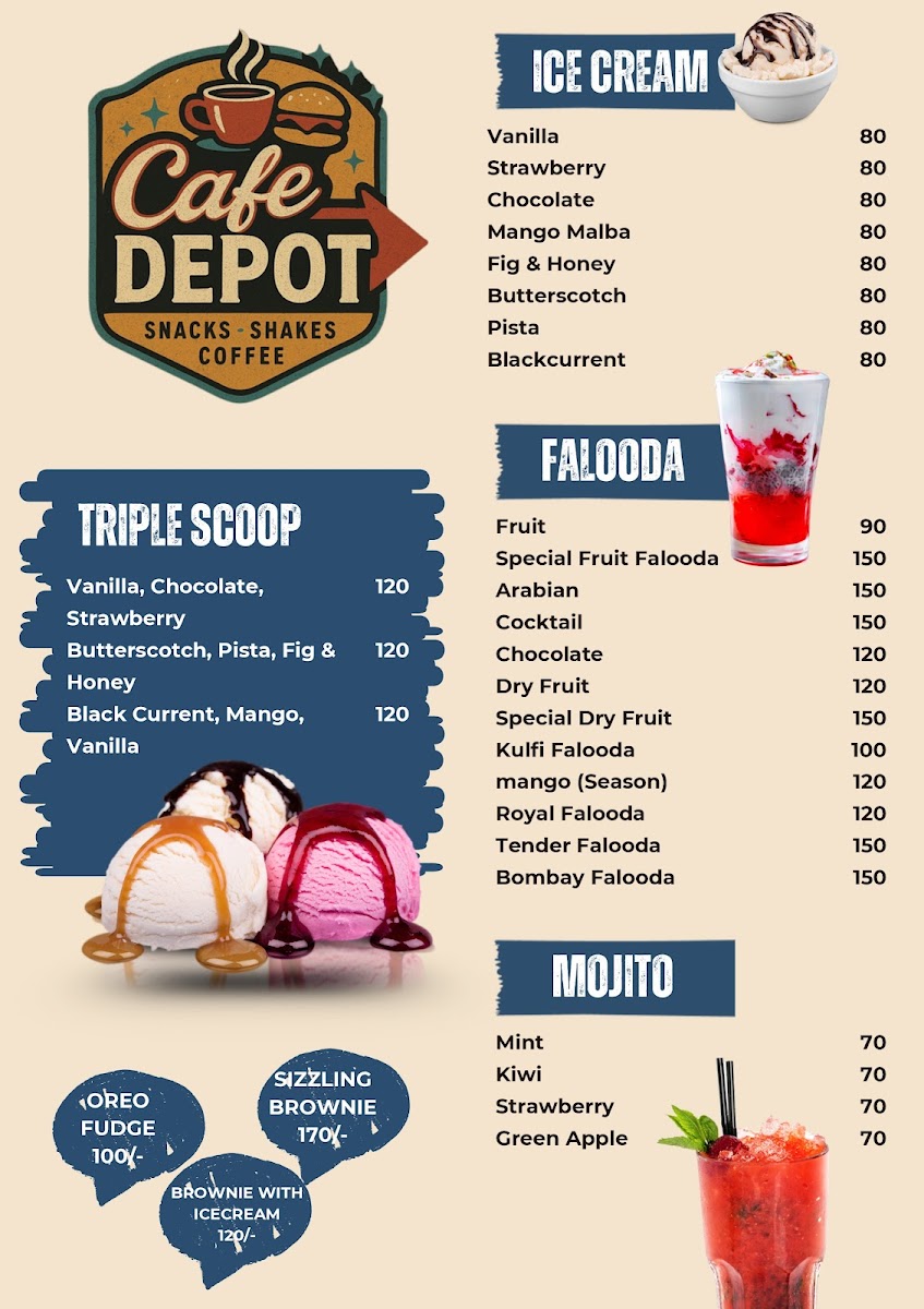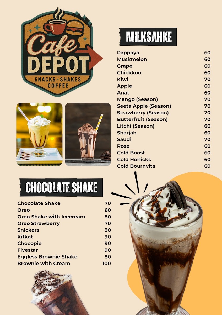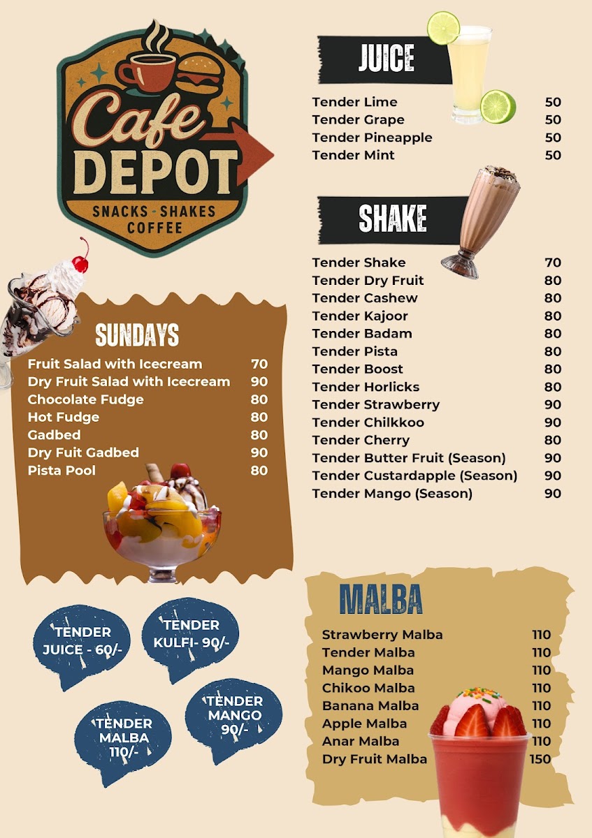 Cafe Depot - Juice, Shakes & Snacks & Irani Tea Menu